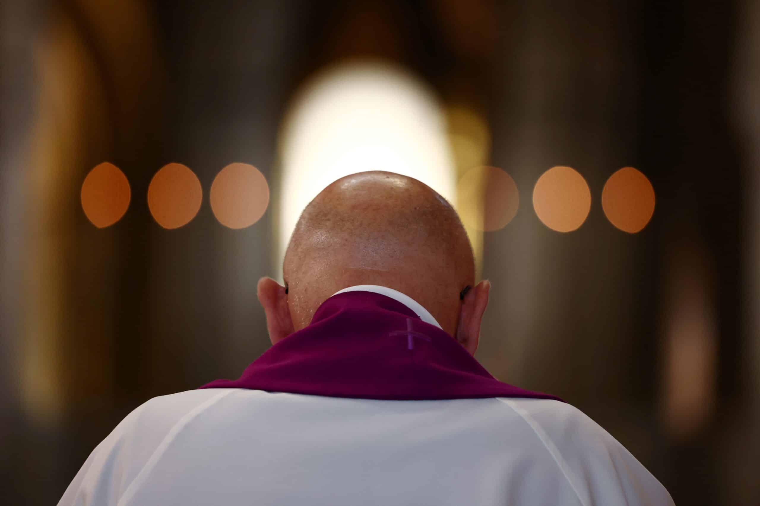 A priest is pictured praying in a file photo. (OSV News photo/Sarah Meyssonnier, Reuters)