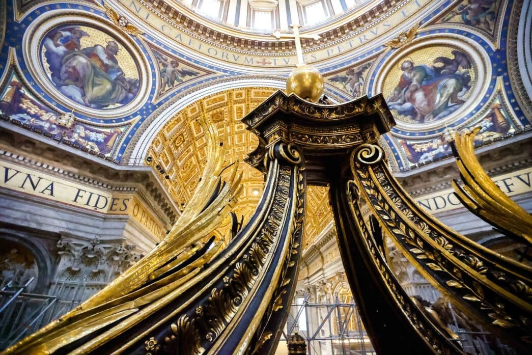 But before the Catholic faithful can see the baldachin in its full splendor, final touches must be made to the structure designed by Gian Lorenzo Bernini, as well as to the sculpture above the basilica’s Altar of the Chair, which is also being restored.