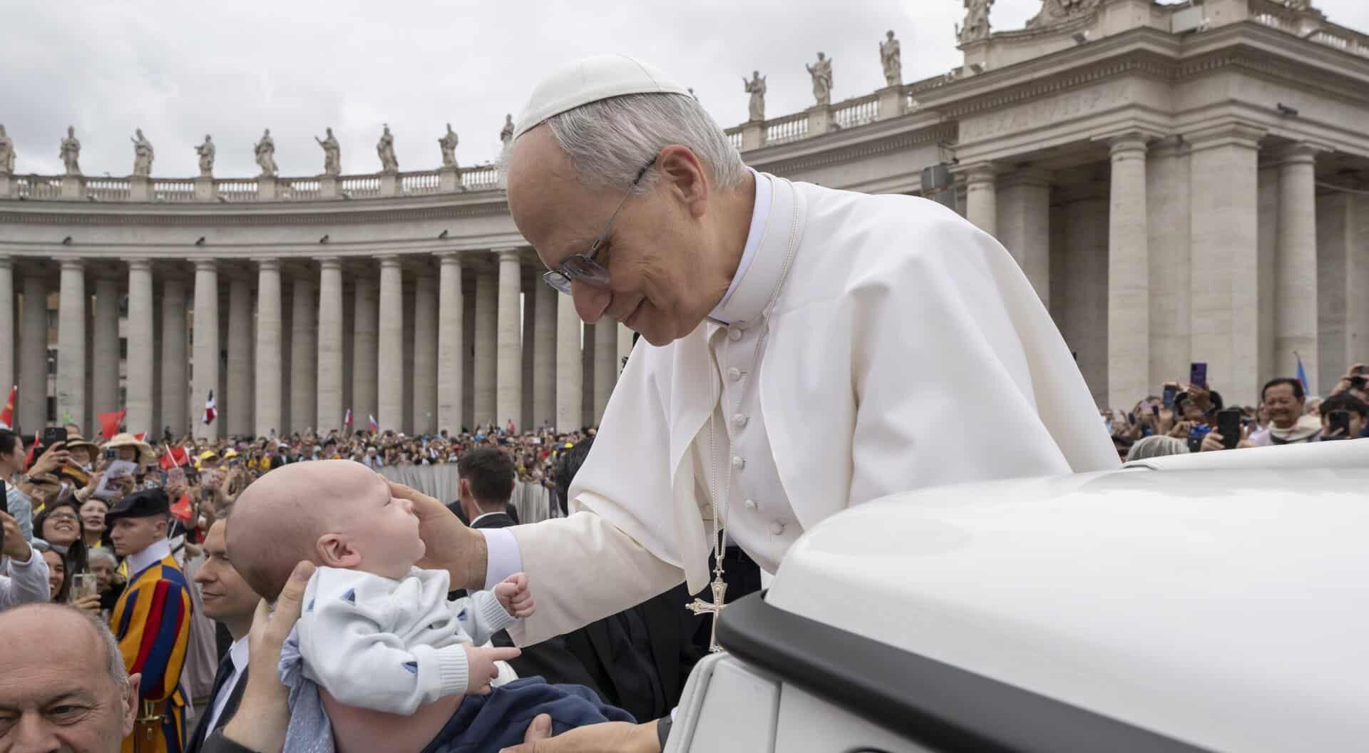 Three hours earlier, the couple from SS. Peter and Paul Cathedral Parish in Indianapolis had arrived in the plaza in front of St. Peter’s Basilica with one great hope — to have their 6-week-old baby, Laurence, receive a blessing from the new pope during his first general audience on May 21.