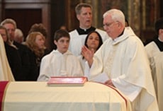 Numerous symbols are employed in Catholic funerals. Here is what each one stands for: ![]() Holy water: A reminder of the deceased’s membership in the Body of Christ through baptism. Holy water is used to welcome the body or cremains into the church and at the time of the final commendation. ![]() Easter candle: The Easter, or paschal, candle reminds Christians of Christ’s presence among us. Blessed each year at the Easter Vigil, the presence of the candle at the funeral also reminds the assembly of that night when, in hope, the Church anticipates Christ’s resurrection. ![]() Pall: It is customary in the United States and other places to place a white cloth over the casket or cremains, called a pall. This is another reminder of baptism — when each of the baptized receives a white garment that signifies their dignity. The pall also symbolizes that each person is equal in the eyes of an all-loving and merciful Father. Book of Gospels or Bible: Christians model their lives on the Word of God and so it might be appropriate to place a Bible or Book of the Gospels atop the casket or near the cremains during the funeral Mass. It reminds the assembly of the deceased’s fidelity to the Word in this life that leads them to newness of life in eternity. ![]() Cross: A cross or crucifix may be placed atop the casket or near the cremains during the funeral Mass. This reminds us of the primary Christian symbol with which we were signed at baptism and by which Christ redeemed the world and won victory over sin and death. ![]() Incense: Incense serves a twofold purpose in the funeral rites. It is used as a symbol of our respect for the deceased’s body, which became a temple of the Holy Spirit in baptism. And it also represents the prayers of the assembly on their behalf, rising to God’s throne. ![]() Flowers: Flowers may be used “in moderation” (OCF, No. 38). Some parishes have specific rules on the use of flowers, so it is a good idea to check with the parish staff before making arrangements. ![]() Liturgical color: For funeral Masses in the United States, the sacred ministers may wear white, violet or black vestments. “The liturgical color chosen for funerals should express Christian hope but should not be offensive to human grief or sorrow” (OCF, No. 39). This is the choice of the sacred minister, but if you have a preference, feel free to express it. |