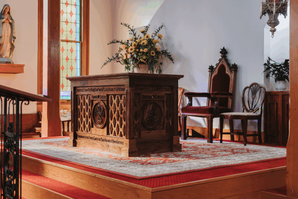 Even a substantial and ornate wooden altar, like the one he built for Our Lady of Mount Carmel in St. Francisville, Louisiana, doesn’t have the lifespan of stone or metal — especially in humid south Louisiana, where Coleman’s workshop is based. But that’s not necessarily a flaw.