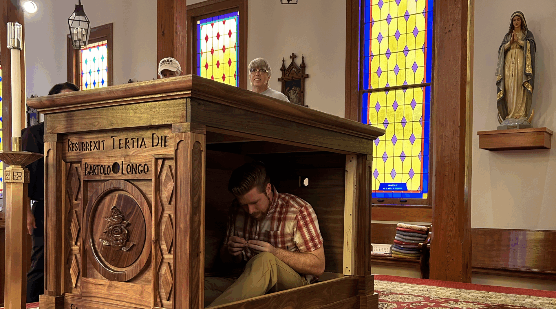 But he did long to serve the Church more directly. He’d always been interested in woodworking, ever since he built a kneeler in shop class, and gradually he began to spend more and more time woodworking as a hobby. When his pastor at Sacred Heart of Jesus Parish in Baton Rouge said the church’s altar rails needed restoring, he made the time to get it done.